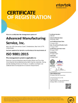 Advanced Manufacturing Service's Quality Policy is to provide products and services that consistently meet or exceed the standards set by our customers and which are delivered on and at the greatest value. Advanced Manufacturing Service is committed to comply with requirements and continuously improve the effectiveness of the quality management system.